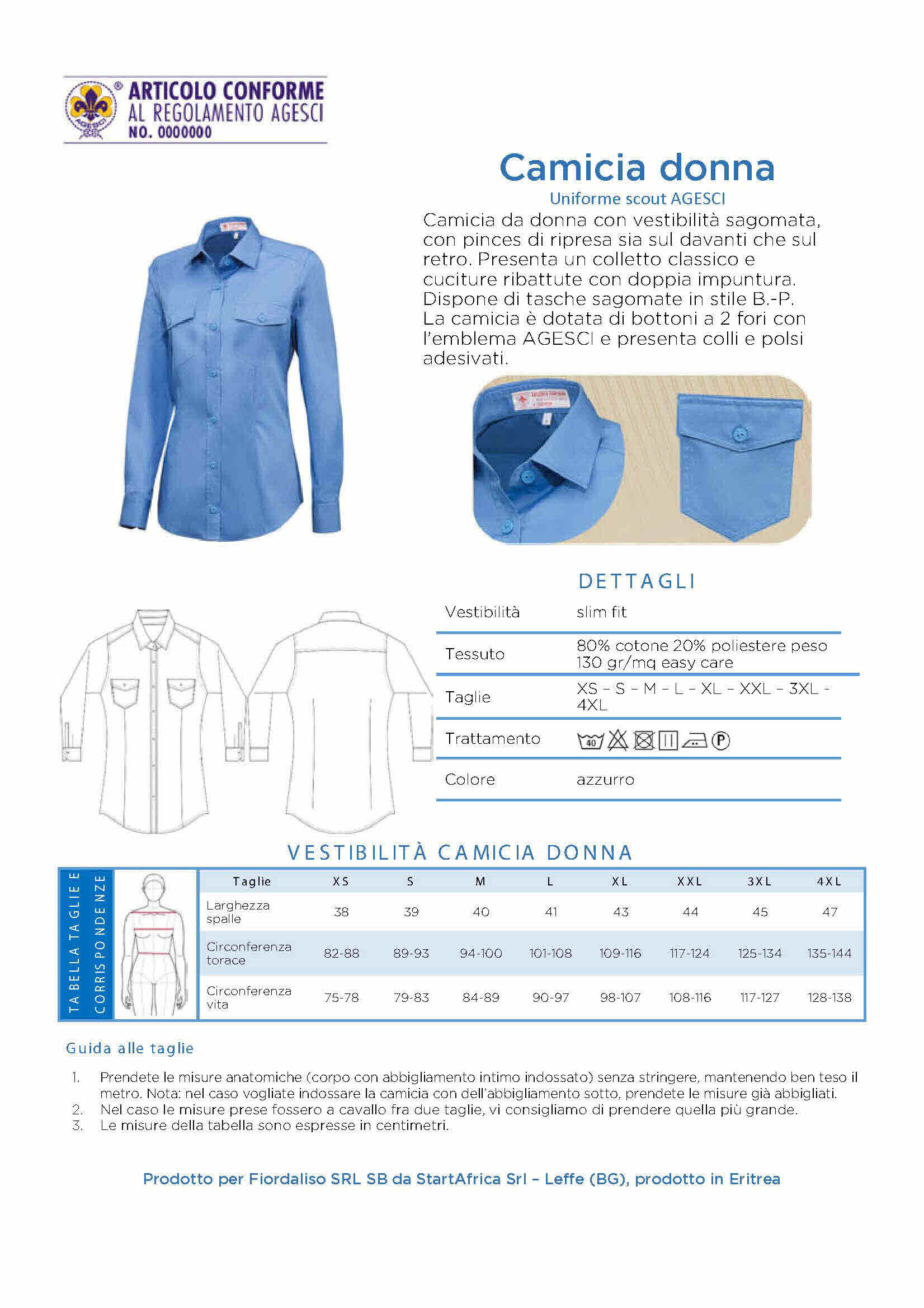 Camicia dell'uniforme in cotone, colore azzurro modello femminile