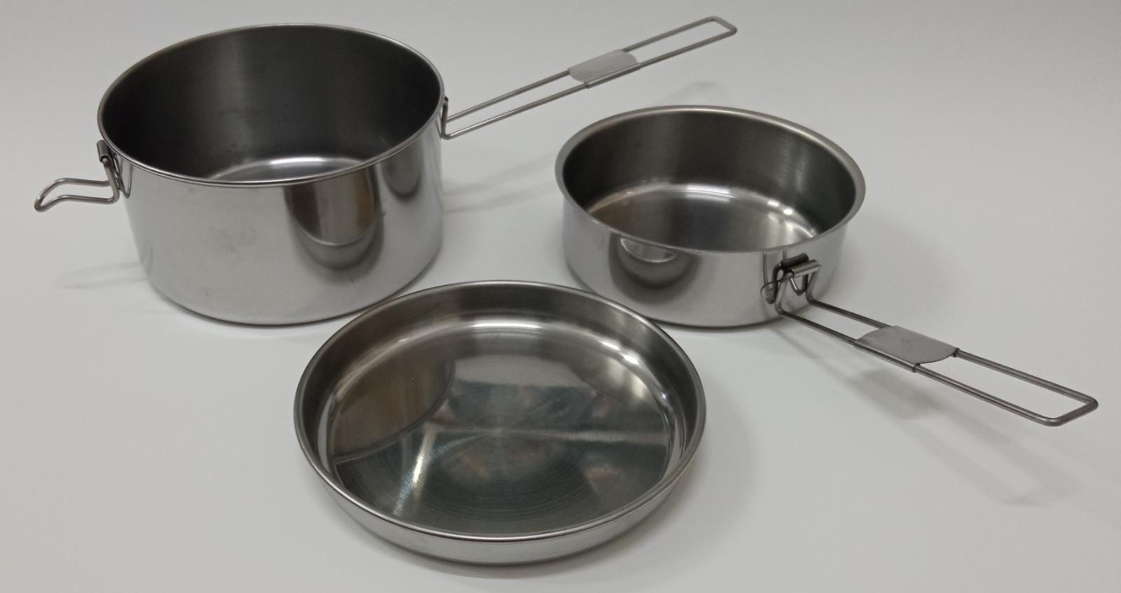 Gavetta in acciaio inox composto da 3 elementi: piatto, padella e pentola